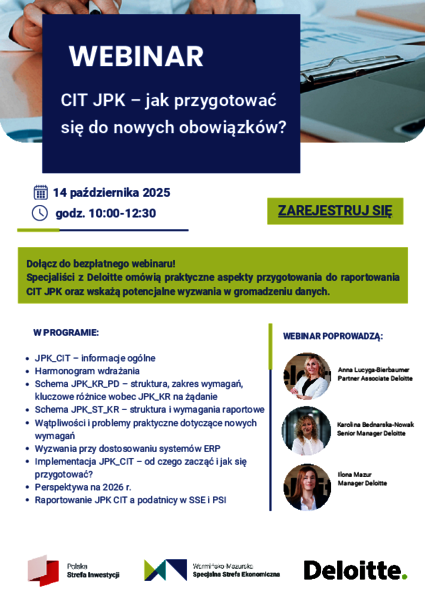 Od ponad roku aktywnie wspiera klientów działających w specjalnych strefach ekonomicznych (SSE) oraz w ramach Polskiej Strefy Inwestycji (PSI) w projektach związanych z wdrożeniem JPK_CIT.