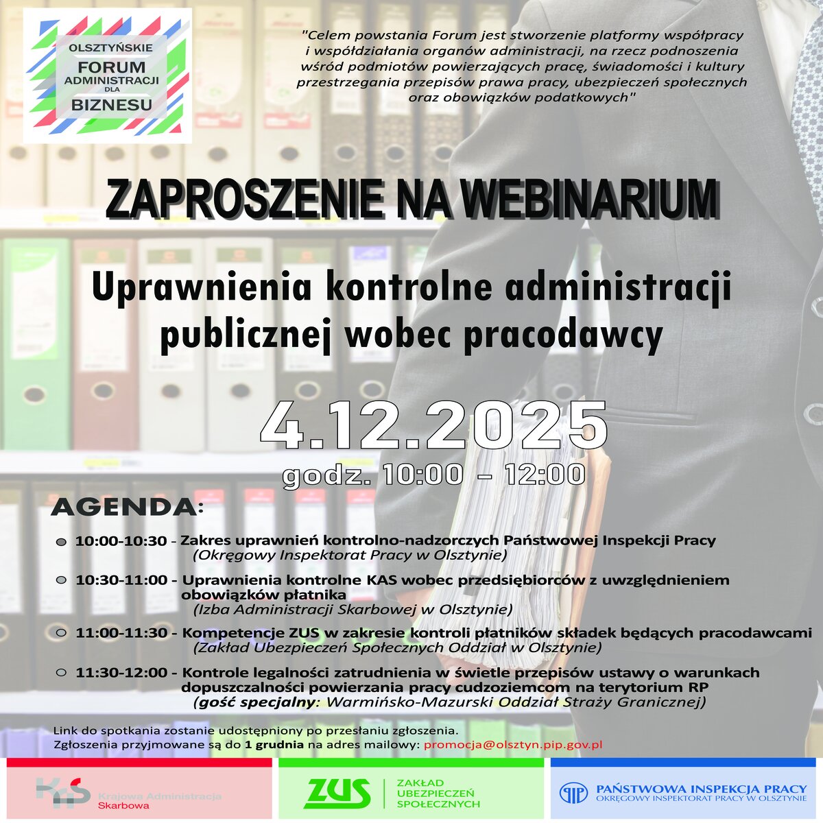Zaproszenie na webinar "Uprawnienia kontrolne administracji publicznej wobec pracodawcy"